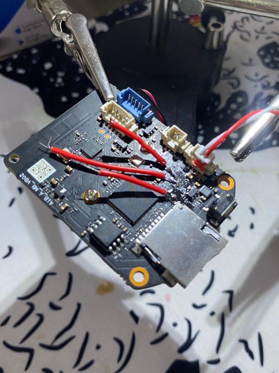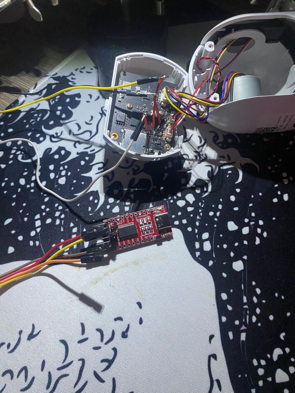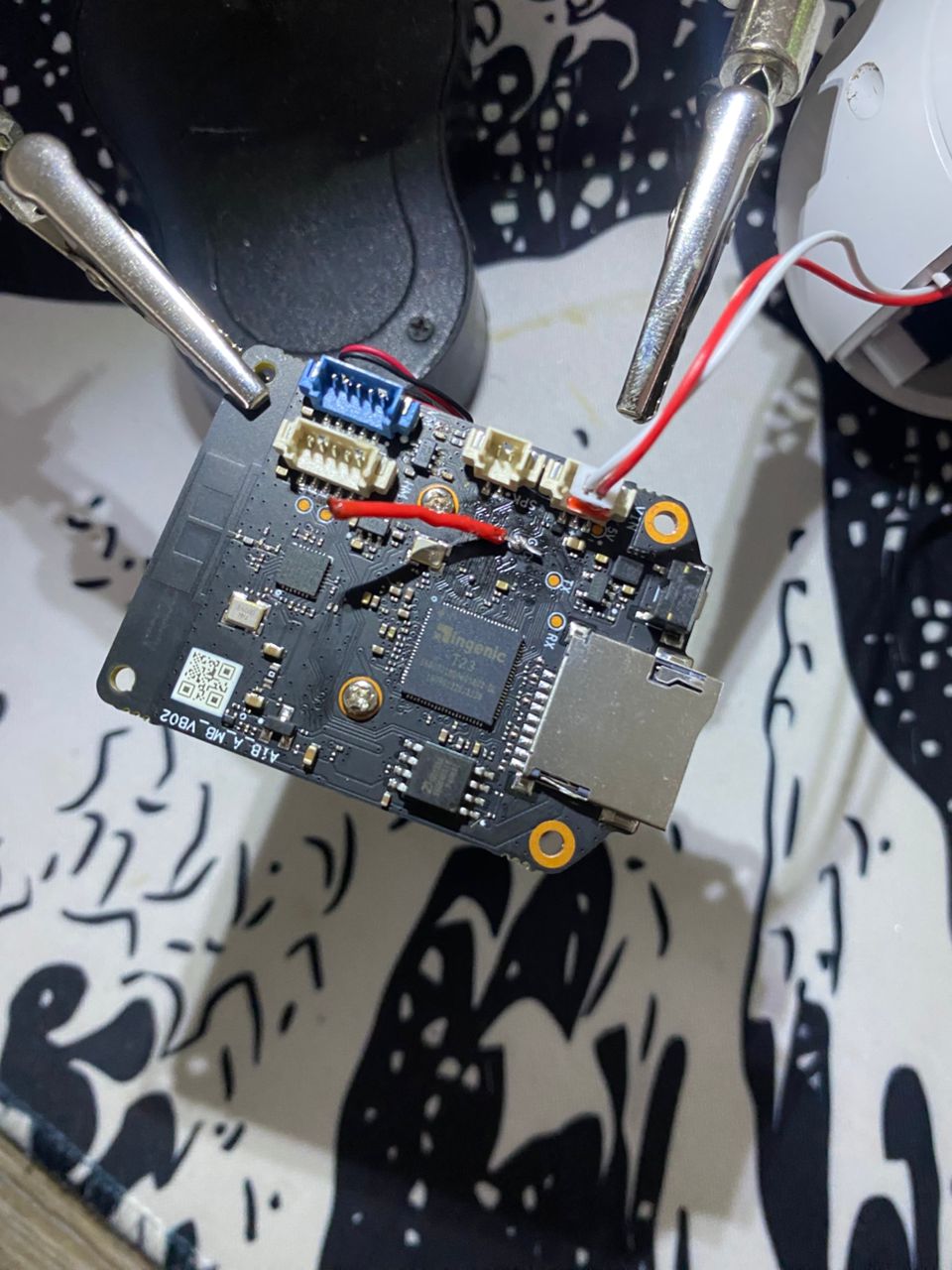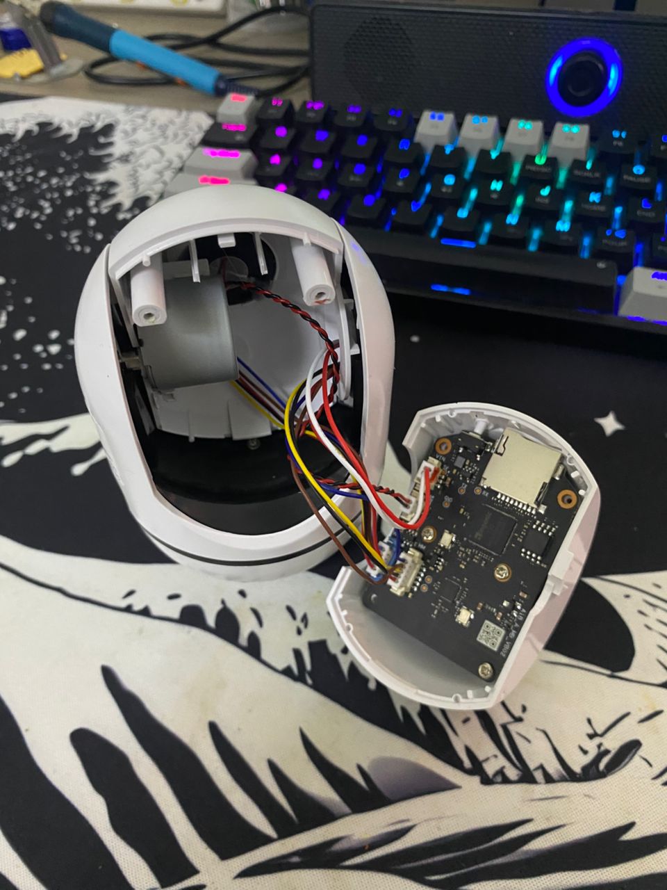 PCB design observations: Two-board design (main + camera module). Implication: modular but increases attack surface (inter-board communication = potential side-channel)