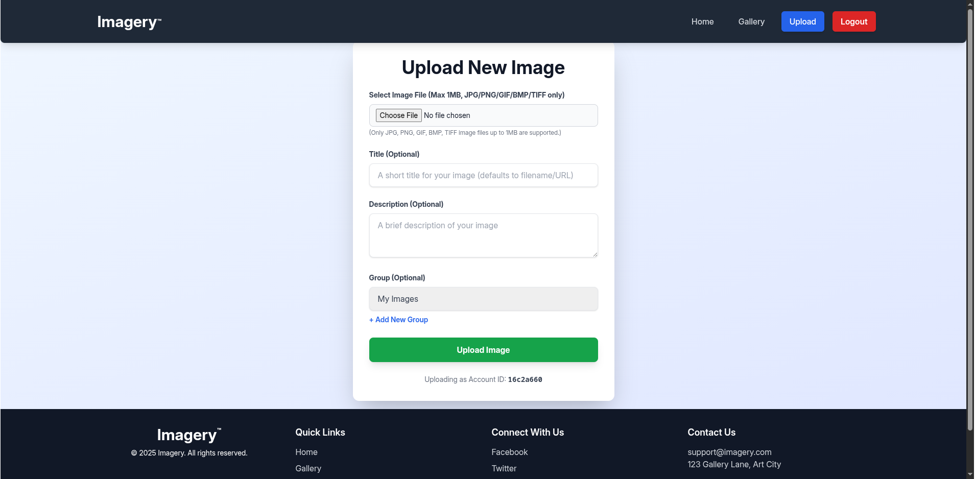 I created an account and logged in, arriving at the upload page.
